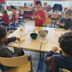 Et d’une pierre deux coups, en cuisinant, les élèves ont aussi enrichi leur vocabulaire des mots spécifiques de la recette.